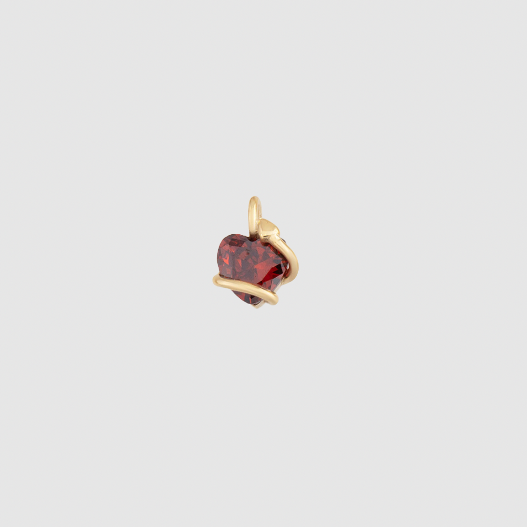 Handgefertigtes Charm in Form eines roten Herzens, das von einer Schlange umfasst wird, aus 925er Silber, wahlweise in goldplattierter Ausführung.