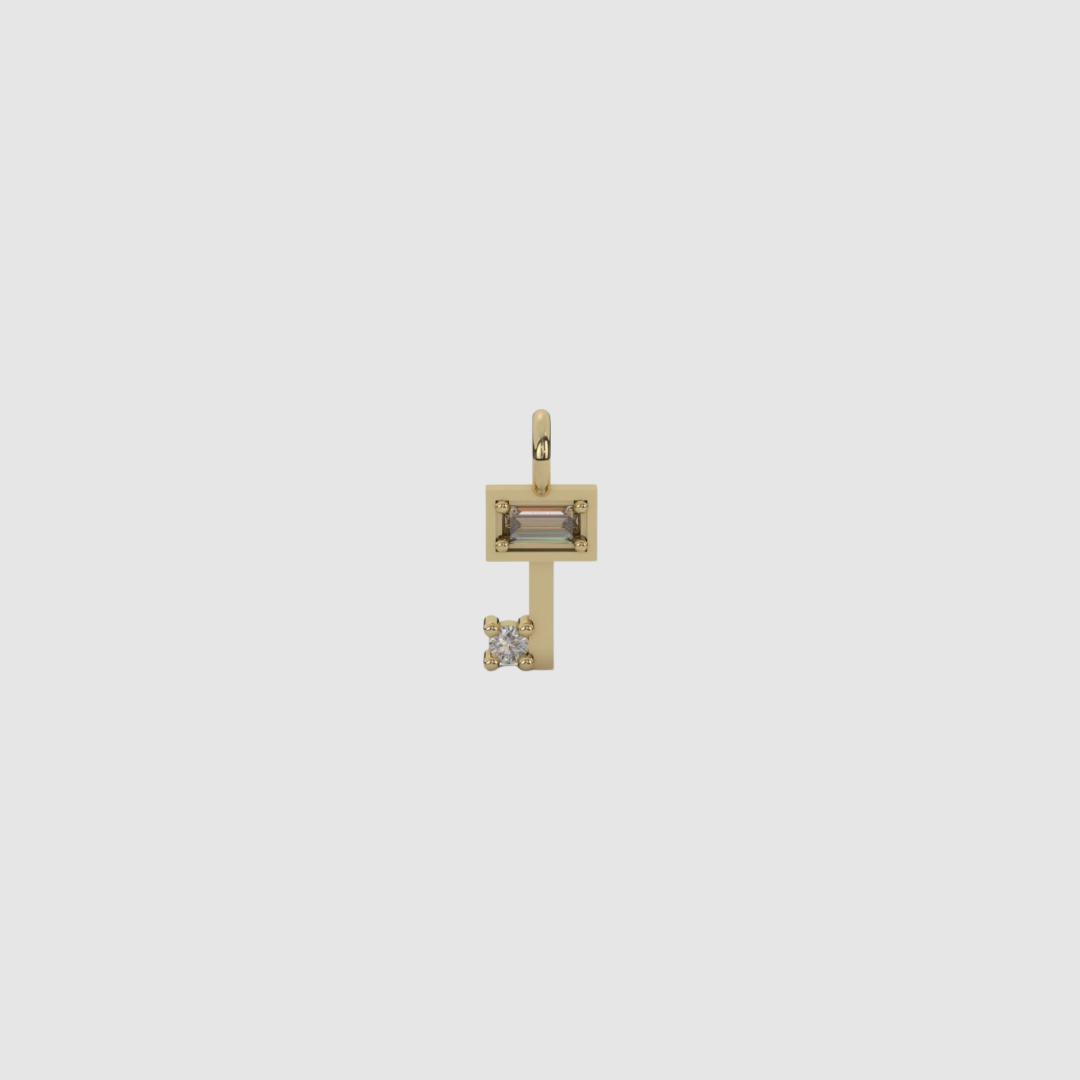 Handgefertigtes Charm in Form eines Schlüssels mit Steinchen aus 925er Silber, wahlweise in goldplattierter Ausführung.